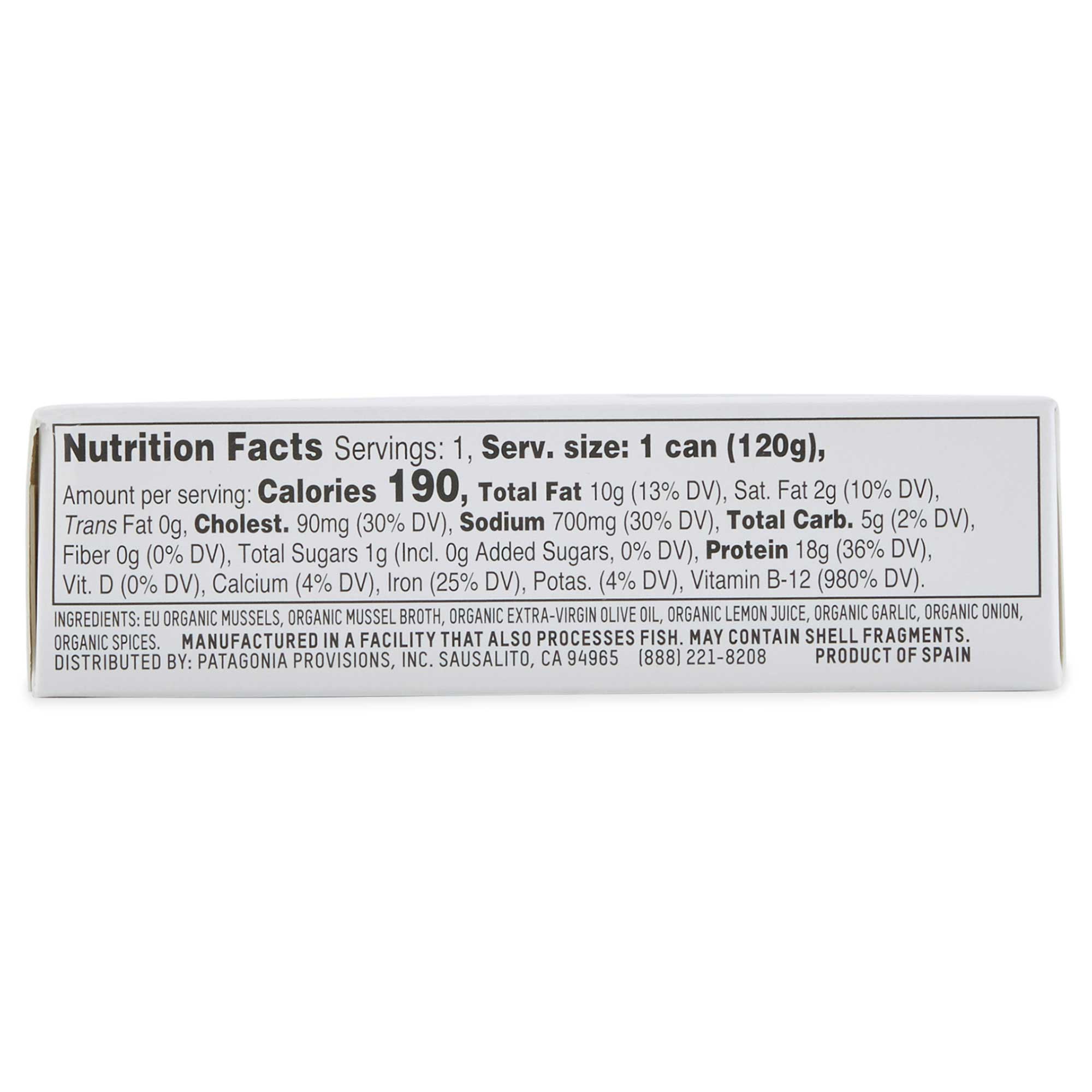 Mussels, Mussel Broth, Organic Extra-Virgin Olive Oil, Organic Lemon Juice, Organic Garlic, Organic Onion, Organic Spices, Salt