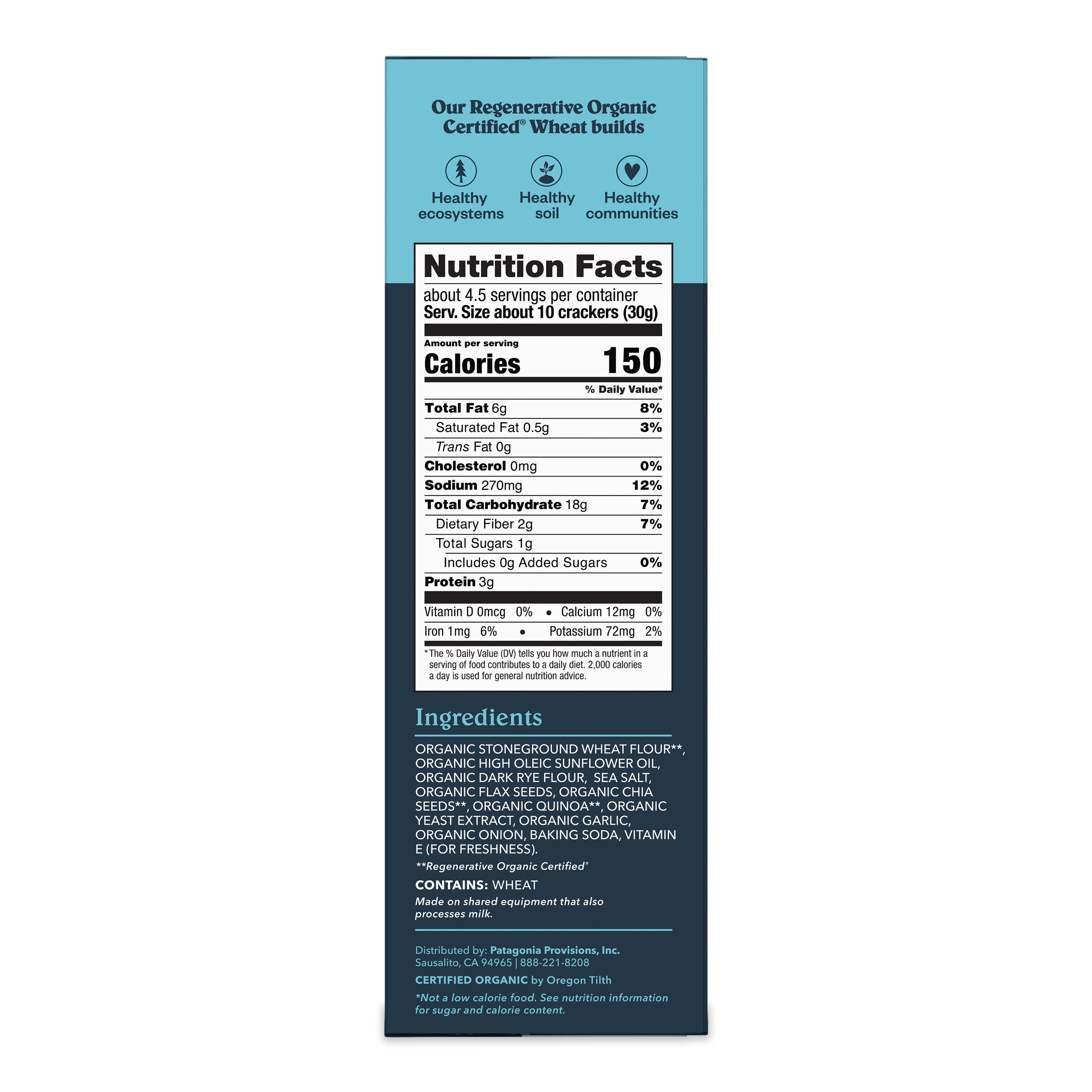 - The Regenerative Organic Certified® (ROC™) stoneground wheat in our crackers is grown and milled in Washington State, creating a short supply chain that benefits the local economy and burns less fuel for transportation.
