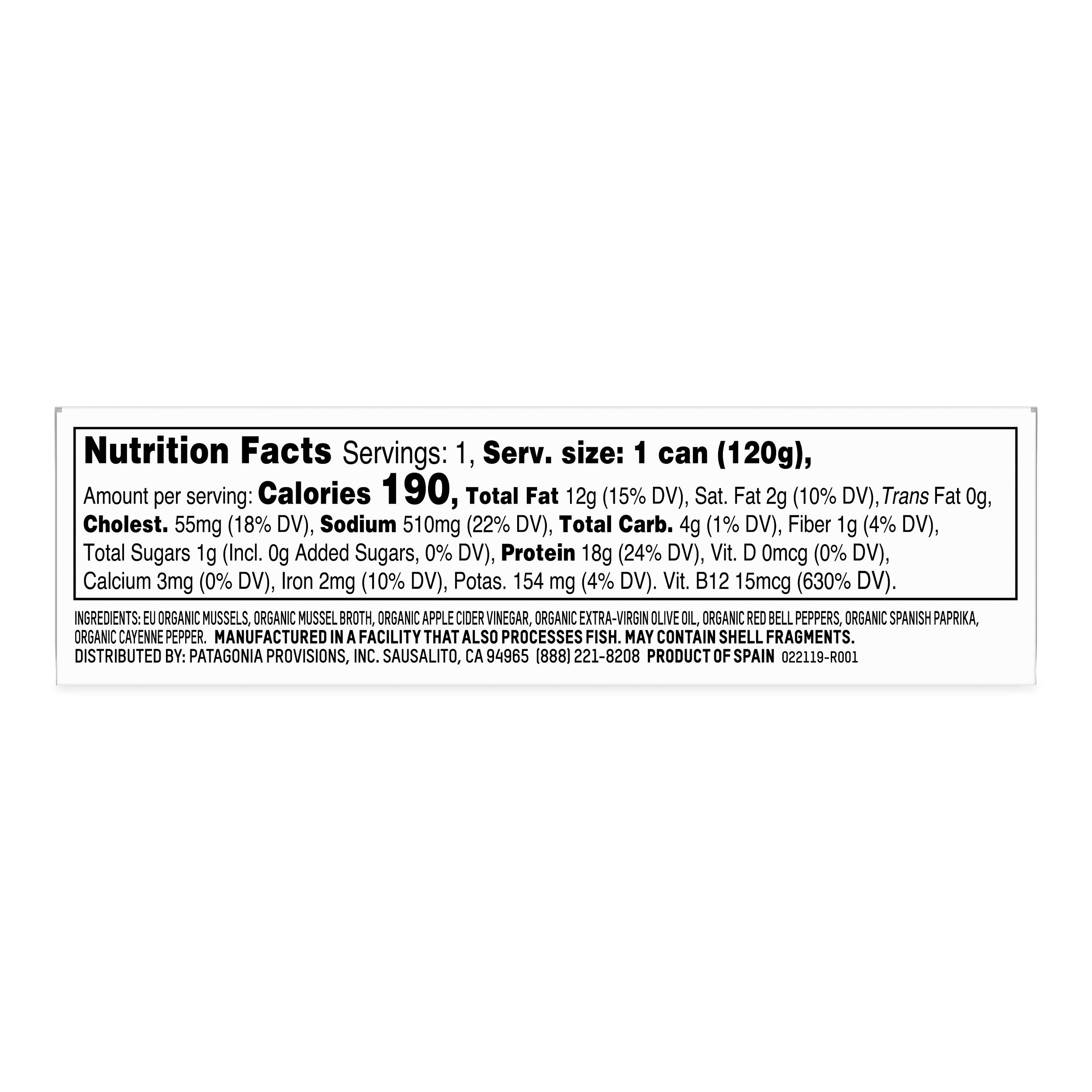 Mussels, Mussel Broth, Organic Apple Cider Vinegar, Organic Red Bell Pepper, Organic Extra-Virgin Olive Oil, Organic Spanish Paprika, Organic Cayenne Pepper, Salt